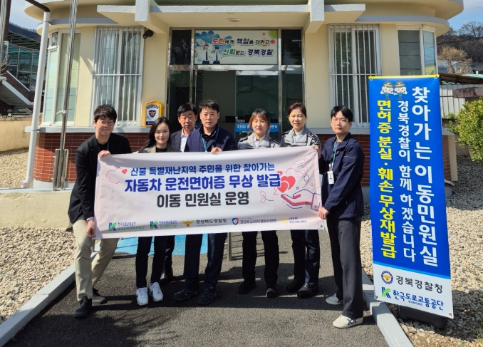[무한뉴스=최진수 기자] 한국도로교통공단 문경운전면허시험장은 경상북도경찰청과 함께 15일 의성 단촌치안센터에서 산불로 피해를 입은 주민을 대상으로 분실·훼손된 운전면허증을 무상 발급하는 등 ‘찾아가는 이동민원실’을 운영했다고 밝혔다.