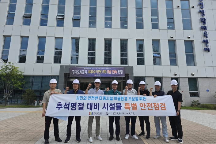 [무한뉴스=최진수 기자] 구미도시공사는 다가오는 추석 연휴를 앞두고 시민들이 안전하고 쾌적하게 공공시설을 이용할 수 있도록 9월 16일부터 9월 26일까지 공영주차장, 체육시설, 휴양림, 캠핑장 등 주요 다중이용시설을 대상으로 특별 안전점검을 실시한다.