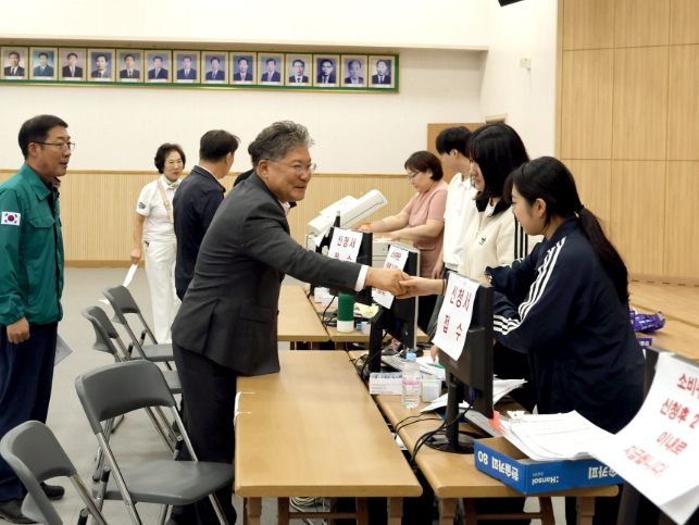 [무한뉴스=정민정 기자] 영광군 장세일 군수는 7월 22일, 지역 주민들의 “민생회복 소비쿠폰” 신청이 진행 중인 영광읍사무소를 찾아 현장점검과 소비쿠폰 지급업무에 힘쓰는 관계자 등을 격려하고, 현장에서 신청 중인 군민들과 직접 소통하는 시간을 가졌다.
