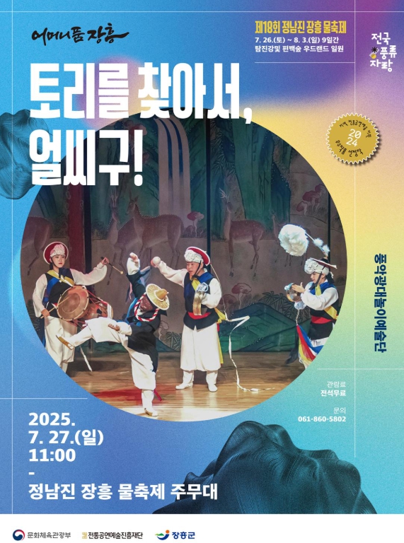 [무한뉴스=정민정 기자] 장흥군은 7월 27일 오전11시부터 물축제 주무대에서 ‘토리를 찾아서, 얼씨구!’ 공연을 개최한다고 밝혔다.