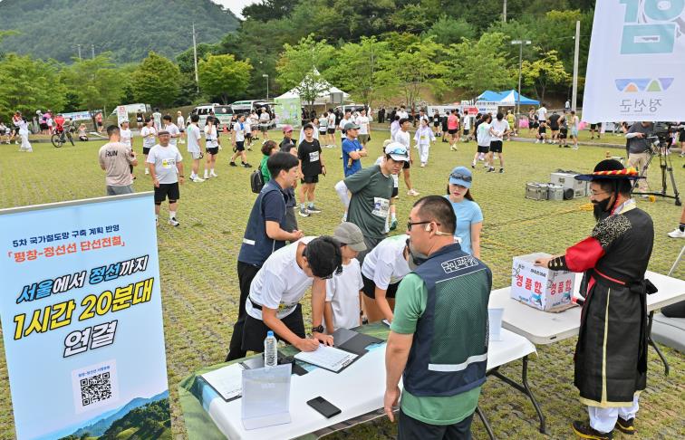| ▲ 정선군, KTX 평창-정선선... 5차 국가철도망 반영 총력전- 제1회 동강마라톤대회 서명운동 부스 운영 |
