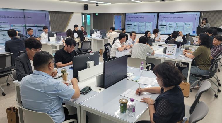 ▲ 전라남도교육청창의융합교육원에서 열린 ‘2025 전남 과학교육 정책협의회’에서 교원들이 분임토의를 진행하고 있다.
