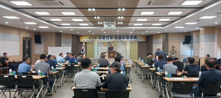 교육에는 총 70명의 한우 사육 농가가 참여해 인공수정 이론 강의와 실습을 병행하는 체계적인 교육을 받았다.
