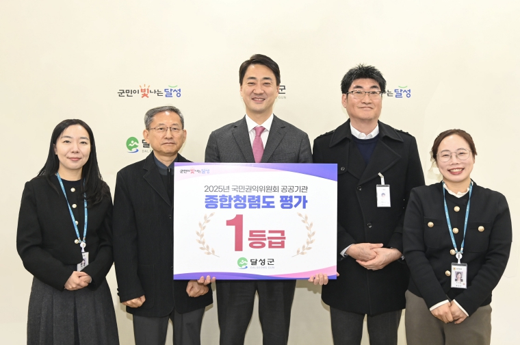 [무한뉴스=최진수 기자] 대구 달성군이 국민권익위원회가 발표한 ‘2025년 공공기관 종합청렴도 평가’에서대구·경북지역 기초자치단체 중 유일하게 최고 등급인 1등급을 획득하며 명실상부한 ‘청렴 도시’로 인정받았다.