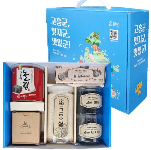 유자 가공품, 쌀, 김·미역·다시마 등 총 6종의 청정 농수산물을 한 세트로 구성해 신선함과 편의성을 동시에 갖춘 것이 특징이며, 군이 직접 포장재와 구성 방식을 개선했다.