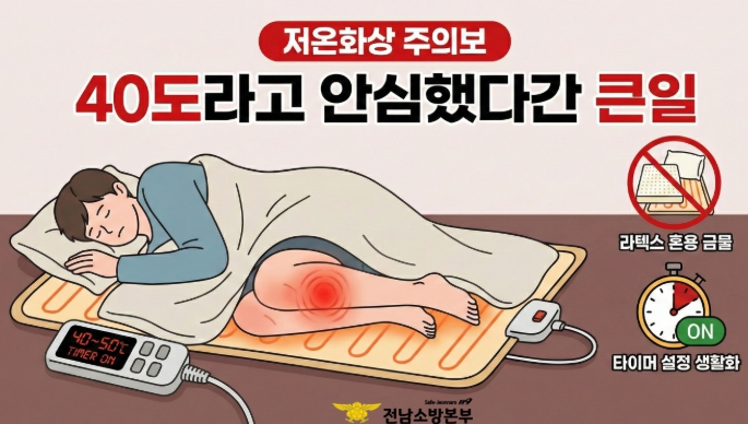 [무한뉴스=정민정 기자] 본격적인 연말 한파로 가정 내 난방기구 사용이 급증한 가운데, 전남소방본부가 '저온화상'에 대한 각별한 주의를 당부하고 나섰다.