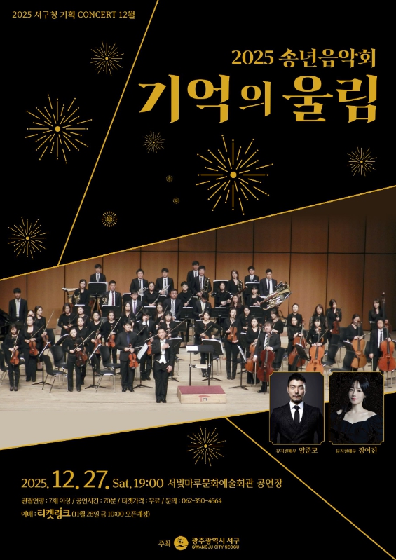 [무한뉴스=정민정 기자] 광주광역시 서구는 2025년 한 해를 마무리하며 오는 27일 오후7시 서빛마루문화예술회관에서 송년음악회 ‘기억의 울림’을 개최한다.
