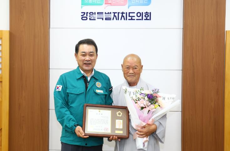 이날 감사패 수여에는 원제용 사회문화위원장(원주)와 엄윤순 농림수산위원장(인제), 김정수(철원), 박길선(원주), 원미희(속초) 등 도의원이 자리를 함께했다.