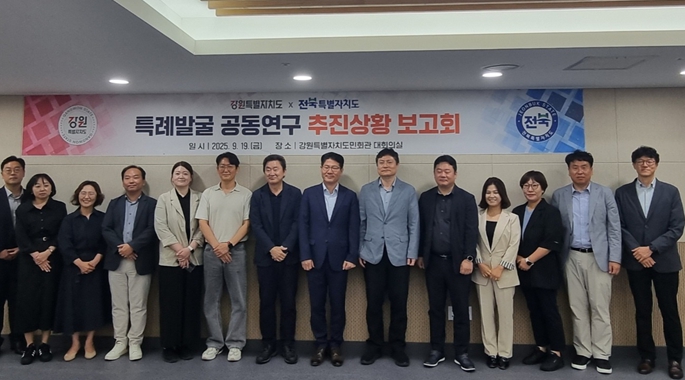 [무한뉴스=정민정 기자] 강원특별자치도는 9월 19일 오전 10시 강원특별자치도민회관 대회의실에서 전북특별자치도와 함께 '특례 발굴 공동연구 추진상황 보고회'를 개최했다고 밝혔다.