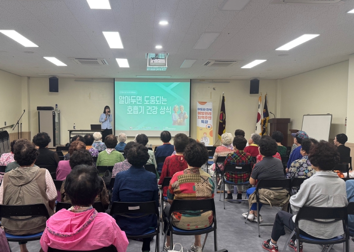 강의는 경기도 남부 아토피‧천식 교육정보센터의 지원을 받아 해당 센터의 교육간호사가 직접 강의했으며, ▲노인천식의 원인과 특징 ▲노인천식의 주요 증상 및 관리 ▲알레르기 비염의 주요 원인과 증상 ▲알레르기 비염 관리 방법 등을 중점적으로 다뤘다.