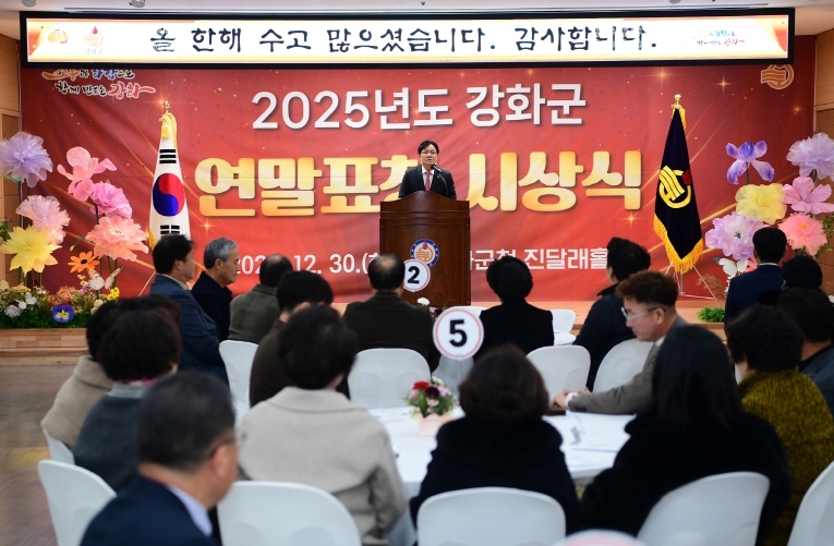 [무한뉴스=정승훈 기자] 강화군은 30일 한 해 군정 발전에 기여한 민간 유공자와 공무원 유공자를 위한 ‘2025년도 연말 표창 수여식’을 개최했다.