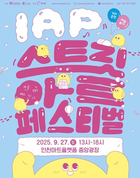 [무한뉴스=정승훈 기자] (재)인천문화재단-인천아트플랫폼은 9월 27일 13:00~18:00 인천아트플랫폼 중앙광장에서 거리공연과 예술놀이 프로그램으로 구성된 거리예술 축제 'IAP 스트릿 아트 페스티벌'을 개최한다.