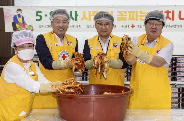 [무한뉴스=정민정 기자] 대전 대덕구는 대한적십자봉사회 대덕지구협의회(회장 이순화)가 제78회 세계 적십자의 날(5월 8일)을 기념해 지난 5일 대덕구청 청렴관에서 ‘사랑이 꽃피는 김치나눔’ 행사를 개최했다고 밝혔다.