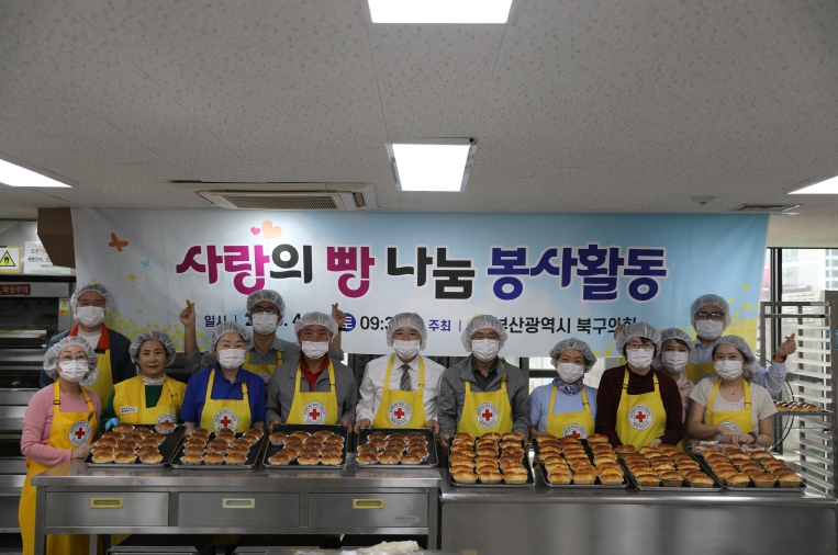 이번 봉사활동은 대한적십자사 부산지사에서 진행됐으며,‘사랑의 빵 나눔’이라는 슬로건으로 따뜻한 이웃 사랑을 실천하고자 부산 북구의회 의원과 직원 등이 전문 강사의 지도 아래 직접 빵을 만들고 포장하는 작업에 참여했다. 완성된 빵은 부산적십자사를 통해 관내 아동복지시설에 기부됐다.