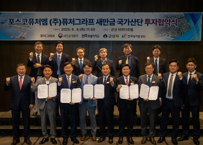 [무한뉴스=정민정 기자] 군산시와 새만금개발청ㆍ전북특별자치도ㆍ한국농어촌공사는 6월 5일 ㈜포스코퓨처엠 신설 자회사인 ㈜퓨처그라프와 ‘이차전지 음극재 핵심소재(이차전지 천연흑연 음극재의 핵심소재로 흑연 광석의 불규칙한 입자를 둥글게 하고 순도를 높인 중간원료) 제조시설 건립을 위한 투자협약(MOU)’을 체결했다고 밝혔다.