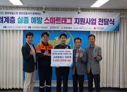 이날 전달된 스마트태그는 포스코광양제철소에서 후원한 총 5,000,000원의 사업비로 광양시사랑나눔복지재단에서 스마트태그 기기 300개를 구매하여 향후 광양경찰서에서 관내 치매 노인 중 실종 위험 및 실종 경험이 있는 300명의 대상자에게 스마트태그를 순차적으로 우선 배부하여 치매 노인 실종 발생시 신속한 발견 및 예방에 활용 예정이다.