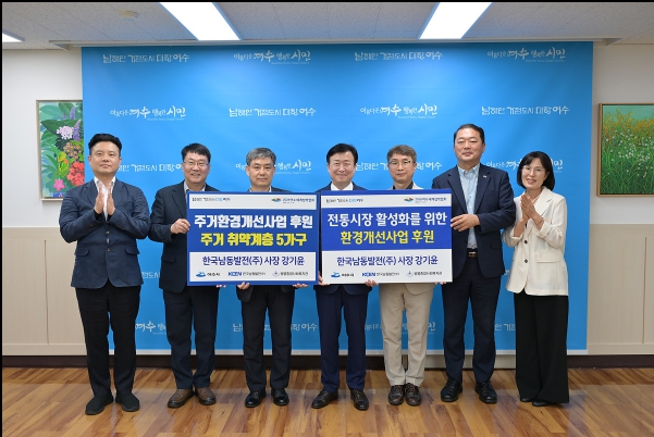 [무한뉴스=정민정 기자] 여수시는 한국남동발전㈜(사장 강기윤)과 지난 3일 취약계층 주거환경개선사업 및 전통시장 환경개선사업을 위한 후원증서 전달식을 가졌다.