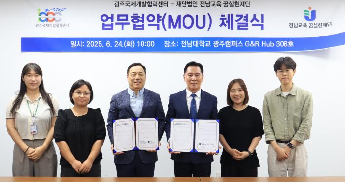 [무한뉴스=정민정 기자] (재)전남교육 꿈실현재단은 24일 광주국제개발협력센터와 ‘글로컬 미래인재 육성을 위한 국제개발협력 교육 업무협약’을 체결하고, 한국국제협력단(KOICA)과 연계한 청소년 해외봉사 체험 교육을 본격 추진한다고 밝혔다.