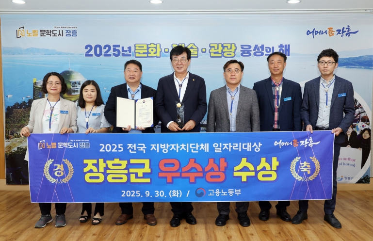 [무한뉴스=정민정 기자] 장흥군이 지난 30일 충북 청주 오스코에서 열린 고용노동부 주관 ‘2025 전국지방자치단체 일자리대상’에서 공시제 분야 우수상을 수상했다.