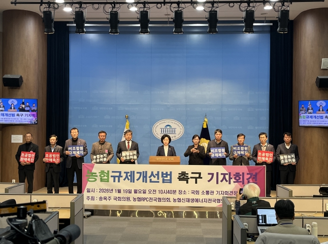 이날 송 의원과 공동으로 국회 소통관에서‘농협 사업 활성화를 위한 농협규제개선법 촉구 기자회견’을 개최한 농협 조합장들은“새마을금고, 신협, 수협, 산림조합 등 다른 상호금융과 마찬가지로 농협의 비조합원 대출·예금 제한을 없애야 한다”면서“일선 농협들이 협력해서 판매·유통사업 활성화를 위해 만든 조합공동사업법인 또한 기존 농협하나로마트와 마찬가지로 농산물과 함께 생필품을 판매장에서 팔 수 있게 하는 것이 마땅하다”고 성토했다.