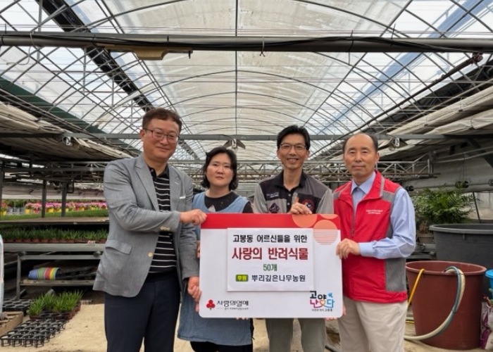 [무한뉴스=정승훈 기자] 고양특례시 일산동구 고봉동은 지난 26일 뿌리깊은나무농원(사리현동)으로부터 지역 어르신들을 위한 반려식물 40세트(한 세트 품종별 3개, 총 120개)를 기부받았다고 밝혔다.