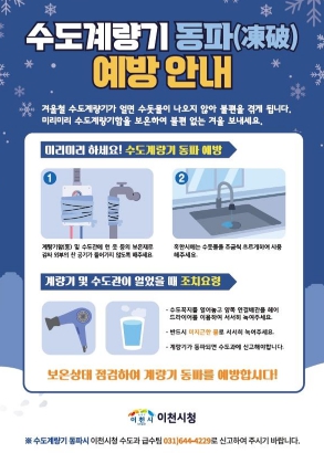 | ▲ 이천시, 수도계량기 동파 예방 안내 |