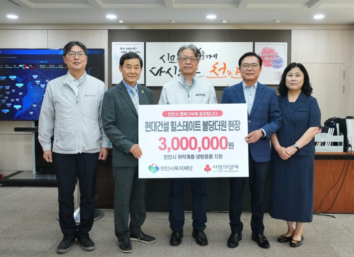 [무한뉴스=정민정 기자] (재)천안시복지재단은 30일 현대건설(대표 이한우)이 천안시청 부시장실에서 폭염 취약가구를 위한 후원금 300만 원을 기탁했다고 밝혔다.