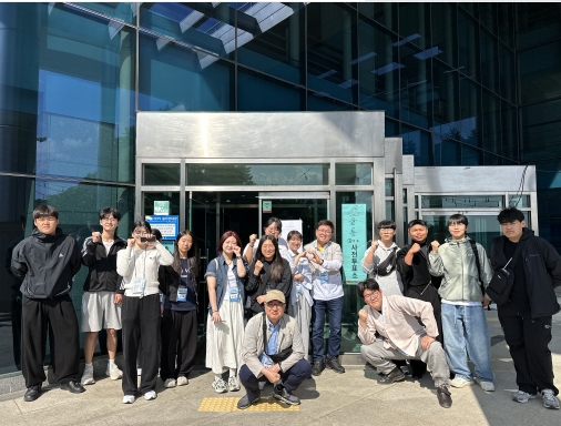 | ▲ 사전 투표 후 학생들과 함께 단체 사진 |