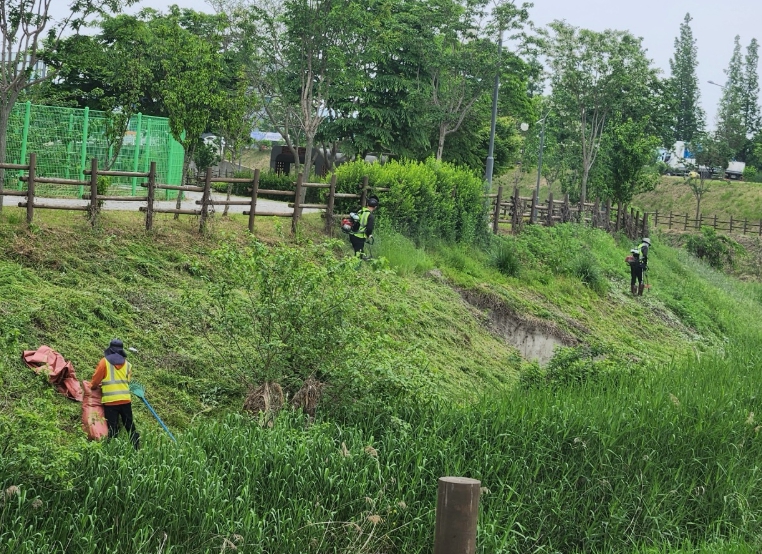 최근 인근 신축 공사 현장 등에서 쓰레기가 유입되고 봄철 풀이 무성하게 자라 정비 필요성이 제기되어 왔다.