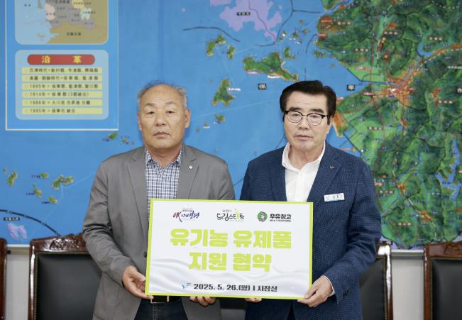 [무한뉴스=정민정 기자] 보령시는 26일 시장실에서 관내 저소득 아동의 건강한 성장을 위해 보령시 소재 유기농 유제품 전문업체인 ㈜우유창고와 유제품 지원 협약을 체결했다.