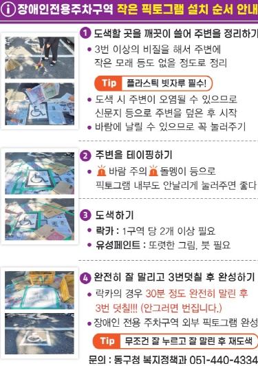 [무한뉴스=최진수 기자] 부산 동구는 장애인전용주차구역에 대한 올바른 인식 개선과 구민들의 자발적 참여를 이끌어내기 위해 2025년 10월부터 ‘장애인전용주차구역 픽토그램(그림문자) 무료대여사업’을 본격 시행한다고 30일 밝혔다.