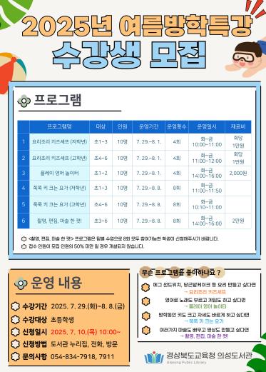 | ▲ 의성도서관, 2025년 여름방학특강 운영 |