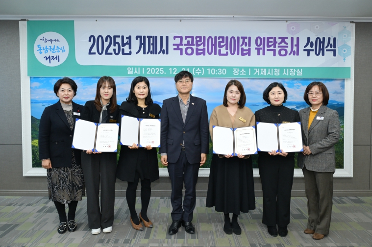 [무한뉴스=최진수 기자] 거제시는 12월 31일, 시장실에서 국공립어린이집 수탁자로 선정된 어린이집에 위탁계약증서를 수여했다.