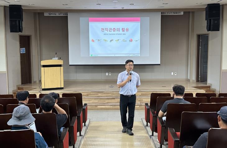 이날 교육은 ‘원예작물 천적 투입 효과증진 기술 보급 시범사업’의 하나로 친환경 해충 방제 기술의 이해도를 높이고 실제 농가에 적용을 확대할 목적으로 실시돼 호응을 얻었다.