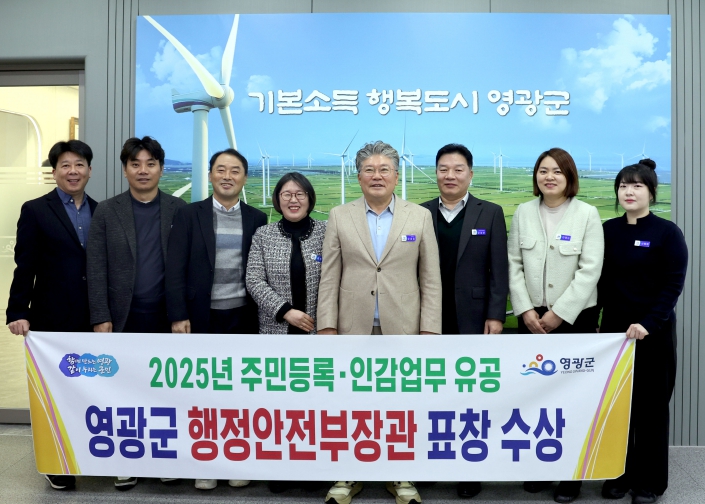 [무한뉴스=정민정 기자] 영광군은 2025년도 주민등록·인감(서명확인) 업무 유공을 인정받아 행정안전부로부터 기관 표창을 받았다고 밝혔다.