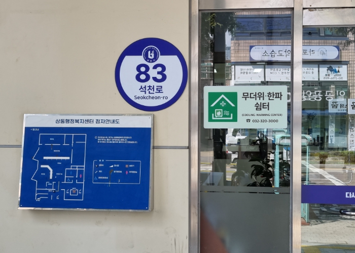 | ▲ 부천시 원미구 상동행정복지센터에 설치된 무더위쉼터 안내표지판 |