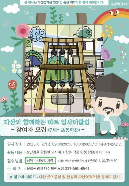 | ▲ 남양주시, 다산 정약용과 함께하는 모자이크 합동 작품 참여 학생 모집 |