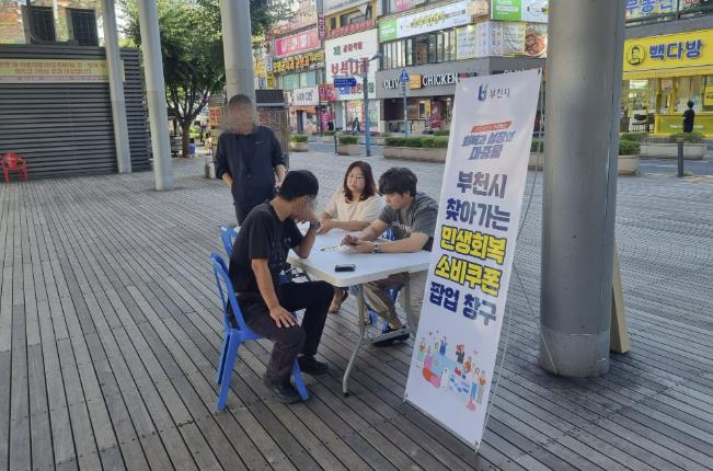 시는 첫날 마루광장에서 노숙인을 대상으로 안내와 접수를 시작한 데 이어, 부천남부역 제일시장과 영구임대주택 단지(한라마을, 덕유마을) 관리사무소, 복지관 등에 팝업창구를 운영했다. 현장에서 즉시 신청할 수 있도록 해 상인, 어르신, 저소득층 등 다양한 시민이 편리하게 혜택을 받을 수 있도록 했다.