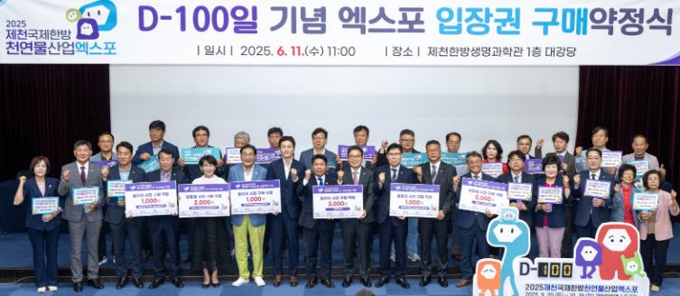 [무한뉴스=정민정 기자] ‘2025제천국제한방천연물산업엑스포 조직위원회’는 지난 11일 '2025제천국제한방천연물산업엑스포' 개막 100일을 앞두고, 엑스포 홍보 및 입장권 판매 붐업 조성을 위해 관내 기관단체, 시민 역량 결집을 위한 '제천EXPO 입장권 구매 협약식'을 제천 한방생명과학관에서 진행했다.
