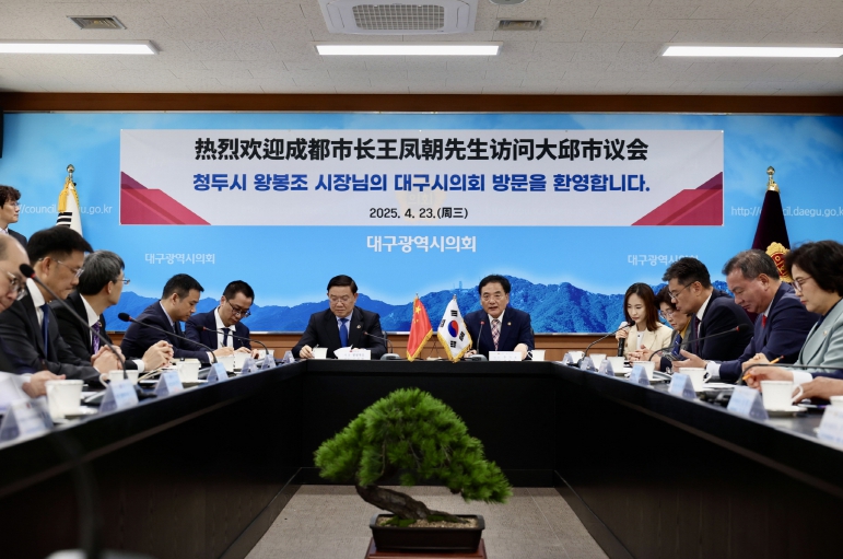 이만규 의장은 “대구와 청두는 다른 문화를 지닌 도시이지만, 혁신과 첨단 산업 육성이라는 같은 꿈을 품고 있다는 점에서 공감대가 매우 크다”며, “오늘 만남이 교류의 지평을 넓히는 계기가 되어 청두시와 대구시가 함께 도약하고 성장하는 든든한 동반자로 나아가기를 진심으로 바란다”고 말했다.