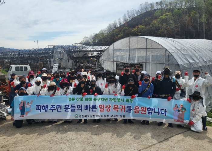 [무한뉴스=최진수 기자] 경상북도김천교육지원청은 4월 23일 의성군 단촌면 일원에서 산불 피해지역의 조속한 일상 회복을 위해 피해 농지 복구 지원 및 환경정비 등 자원봉사활동을 실시했다.