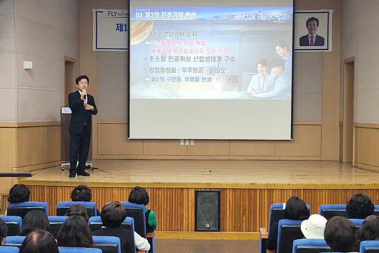 이날 특강에 참여한 참진주여성대학 수강생은 “K-기업가 정신을 기반으로 한 진주시가 우주항공산업 육성의 주역이 됐으면 좋겠다. 오늘 진주의 기적에 대해 많은 것을 알게 됐고 진주시민으로서 우리 시의 발전을 위해 더 응원하겠다.”라고 말했다.