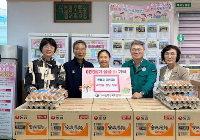 [무한뉴스=최진수 기자] 원불교 함안교당은 지난 22일 소외계층 이웃을 위한 따뜻한 마음을 담아 가야읍 행정복지센터에 직접 방문해 40만 원 상당의 식품(라면 10박스, 계란 10판)을 전달했다.