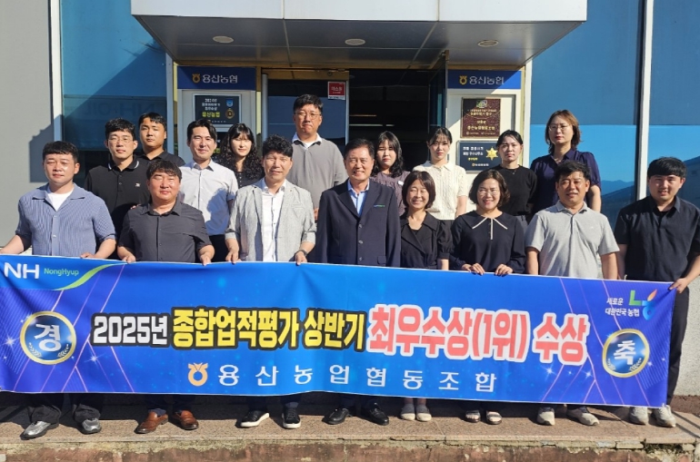 [무한뉴스=정민정 기자] 용산농협(조합장 박철환)은 2025년 상반기 종합업적평가 전국 최우수상과 클린뱅크 금등급을 수상하는 쾌거를 달성했다. 지난 2024년 종합업적평가에서 전국 최우수상과 클린뱅크 금등급 수상에 이어 올해까지 종합업적평가 최우수상과 클린뱅크 금등급에 도전함으로써 2연패 수상에 힘찬 도약을 다졌다.