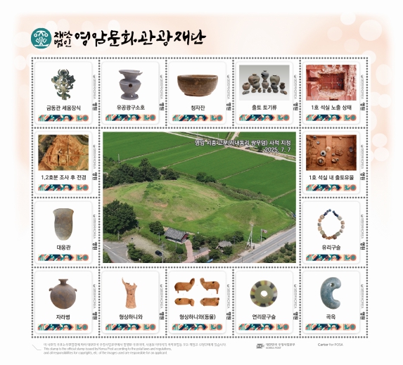 [무한뉴스=정민정 기자] (재)영암문화관광재단은 고대 마한의 문화적 변화와 역사적 가치를 간직한 ‘영암 시종 고분군’이 2025년 7월 7일 국가지정문화재 사적 지정됨에 따라, 이를 기념하는 기념우표를 2종세트를 발행한다고 밝혔다.