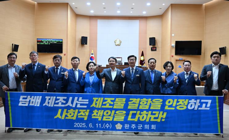 한편, 완주군의회는 이날 채택한 결의문을 대통령비서실장, 국회의장, 보건복지부장관 등 중앙정부 기관과 전국 지방자치단체 및 의회에 송부하여, 전국적인 담배 제조물 책임 강화와 금연 환경 조성 정책이 더욱 확산되도록 적극 협력할 예정이다.