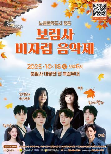 [무한뉴스=정민정 기자] 장흥군은 오는 10월 18일 보림사에서 ‘노벨문학도시 장흥, 보림사 비자림 음악제’를 개최한다고 전했다.