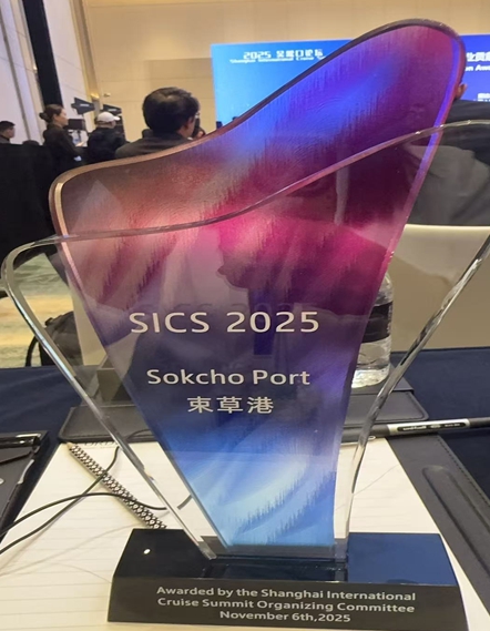 [무한뉴스=정민정 기자] 강원특별자치도와 속초시, 강원관광재단은 11월 6일 중국 상하이에서 열린 '2025 상하이 국제 크루즈 서밋(Shanghai International Cruise Summit)'에서 속초항이 ‘아시아 우수항만상(Emerging Cruise Port Development Award)’을 수상했다고 밝혔다.