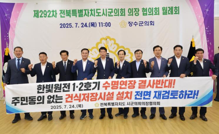 이날 협의회는 장수군의회 최한주 의장이 제안한 인구소멸지역 지역화폐 사용처 확대 촉구 건의안과 미국산 사과 수입 반대 결의안, 고창군의회 조민규 의장이 제안한 한빛원전 건식저장시설 추진과 일방적인 수명연장 규탄 및 대책 마련 촉구 건의안을 채택했다.