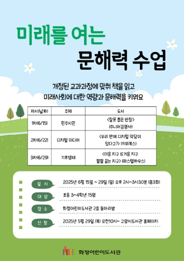 [무한뉴스=정승훈 기자] 고양특례시 화정어린이도서관은 오는 6월 15일부터 29일까지 독서문화 프로그램‘미래를 여는 문해력 수업’을 운영한다.